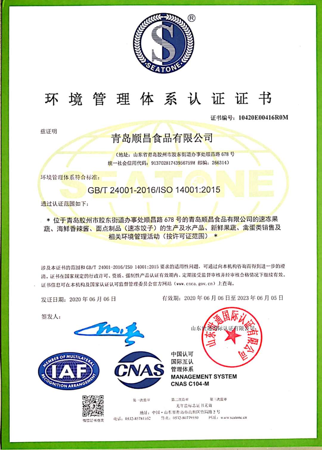 環(huán)境管理體系認(rèn)證證書