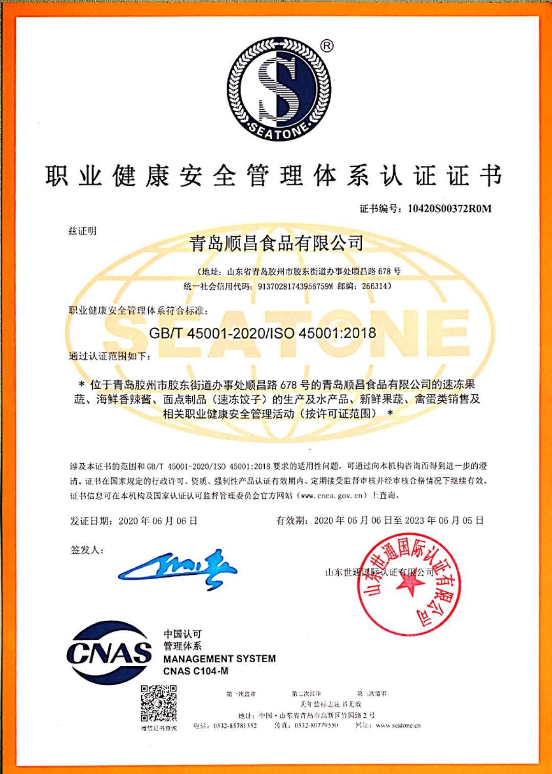 職業(yè)健康安全管理體系認(rèn)證證書