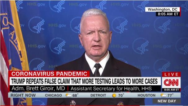 美國疾控中心的醫(yī)務(wù)專家已經(jīng)被派往美國各州協(xié)助開展檢測和疫情防控。美國總統(tǒng)特朗普一直強(qiáng)調(diào)確診病例持續(xù)攀升正好證明了美國廣泛檢測的成績,但其政府官員及共和黨國會議員都不贊成這樣的說法。吉羅爾表示,根據(jù)美國疾控中心的數(shù)據(jù),在6月份,全美各州完成的檢測超過了1600萬份,現(xiàn)在的情況是每天能完成75~80萬份檢測。