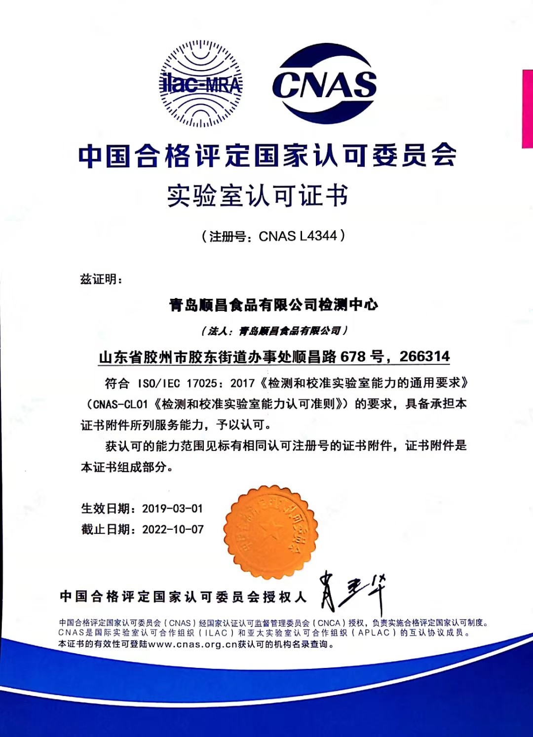 Laboratory accreditation certificate