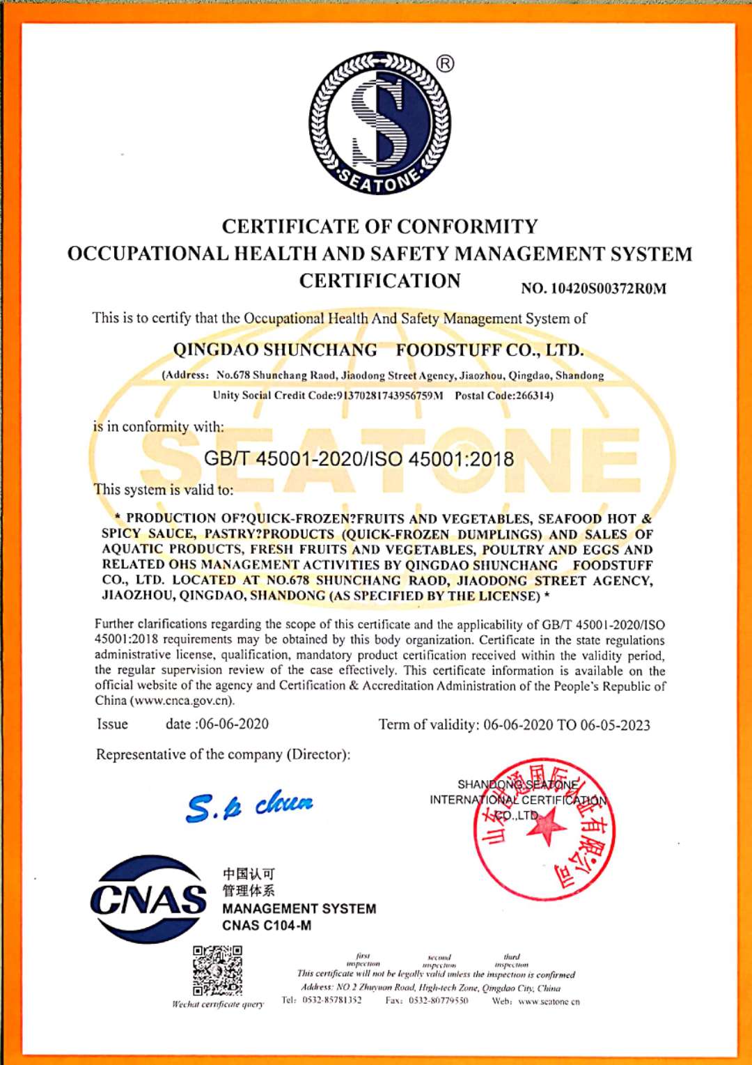 Certificate of safety management system